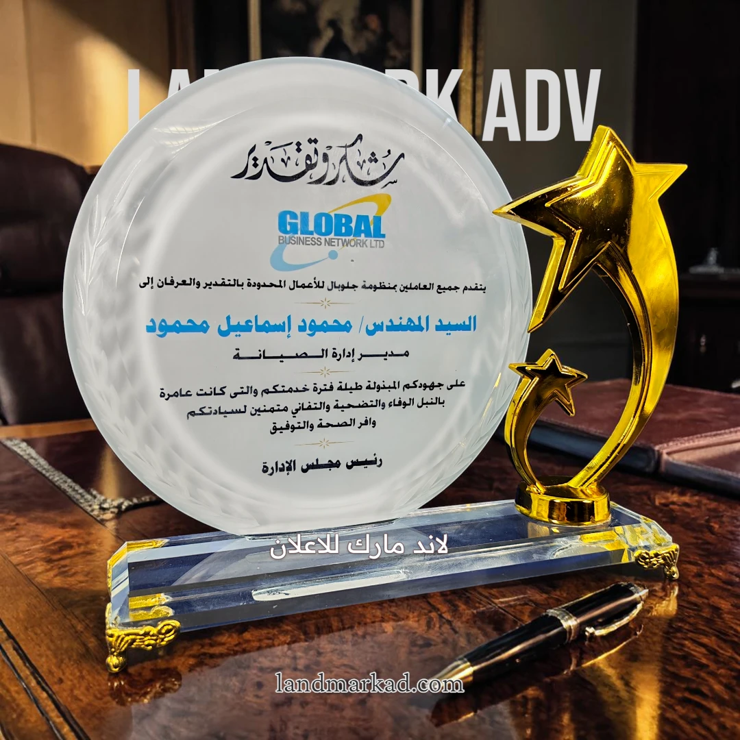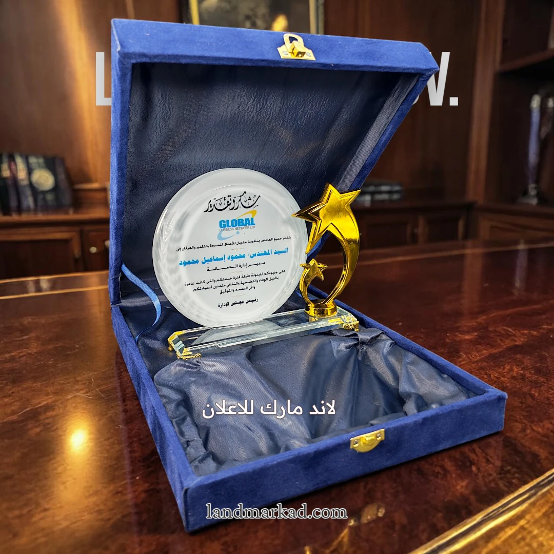 لأنه مش مجرد هدية، ده درع كريستال دائرى على قاعدة ونجمة معدن دهبية بيجمع بين الجمال والقيمة، وهيفضل مع اللي بياخده ذكرى غالية طول العمر.