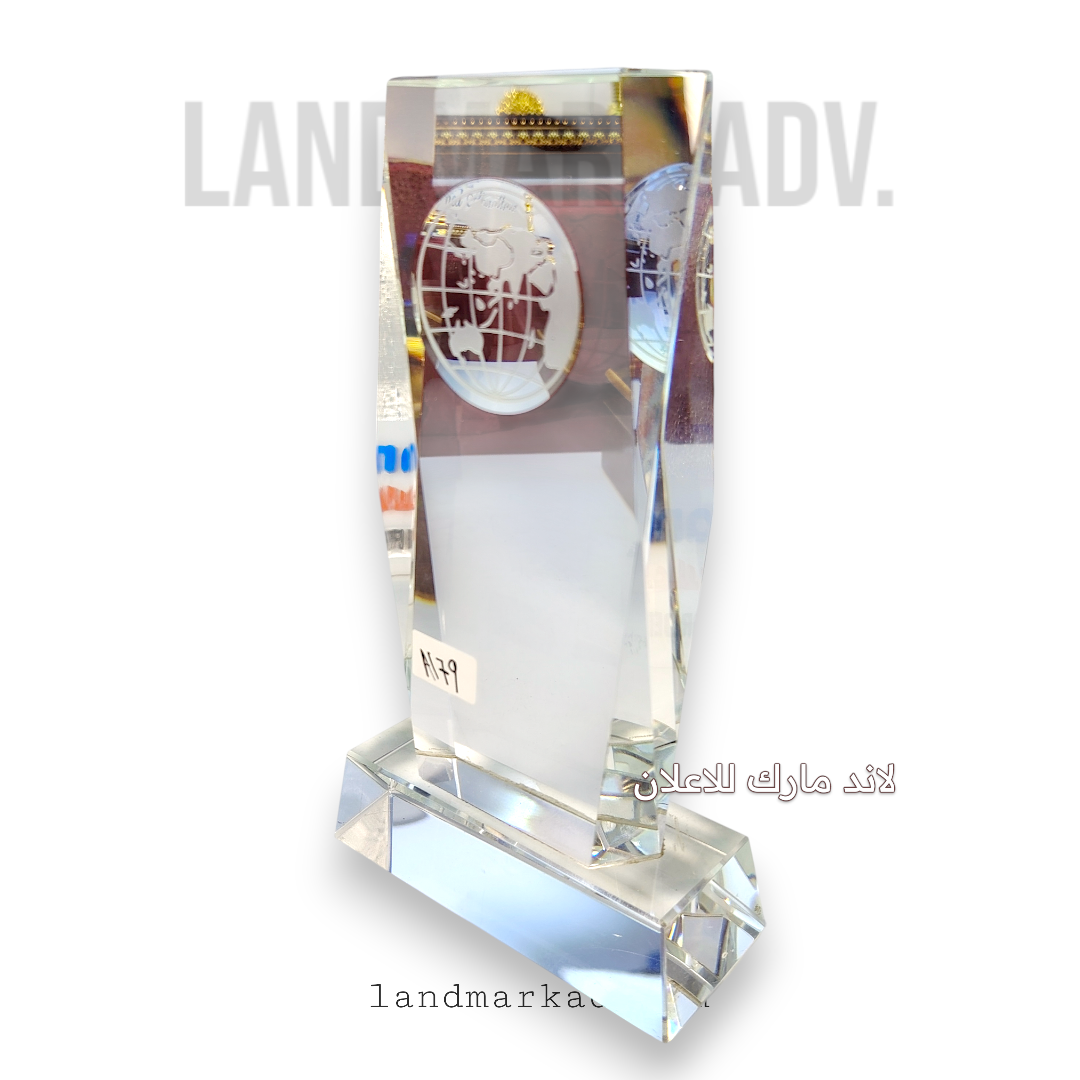 ✨ درع كريستال 21 سم كريستال سميك A179 هو القطعة اللى بتجمع بين الفخامة والرُقيّ فى كل تفاصيلها! مصنوع من كريستال سميك بلمعة عالية تخطف العين، ومقاسه المثالى (21 سم × 12 سم) بيخليه مناسب للعرض على أى مكتب أو ركن مميز.