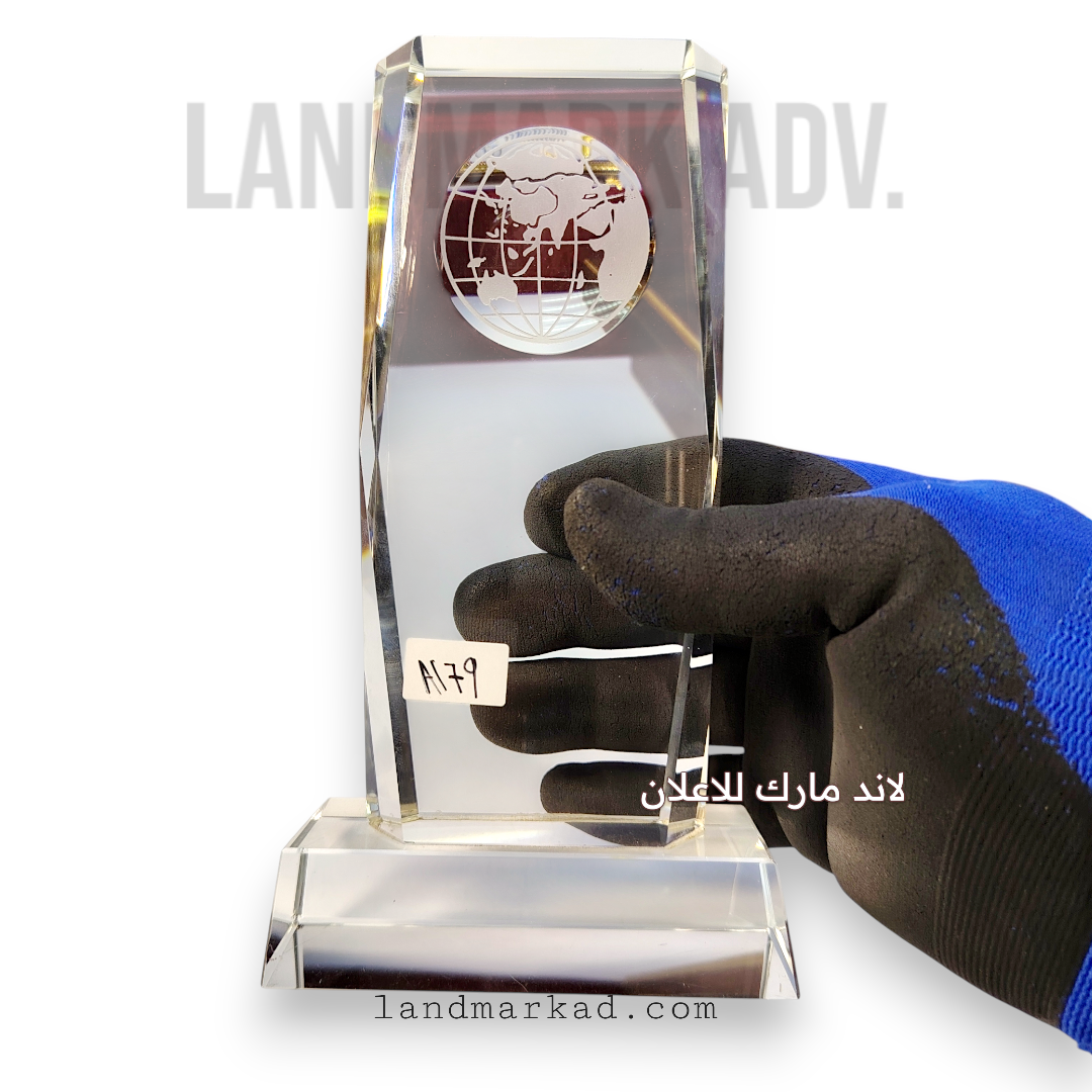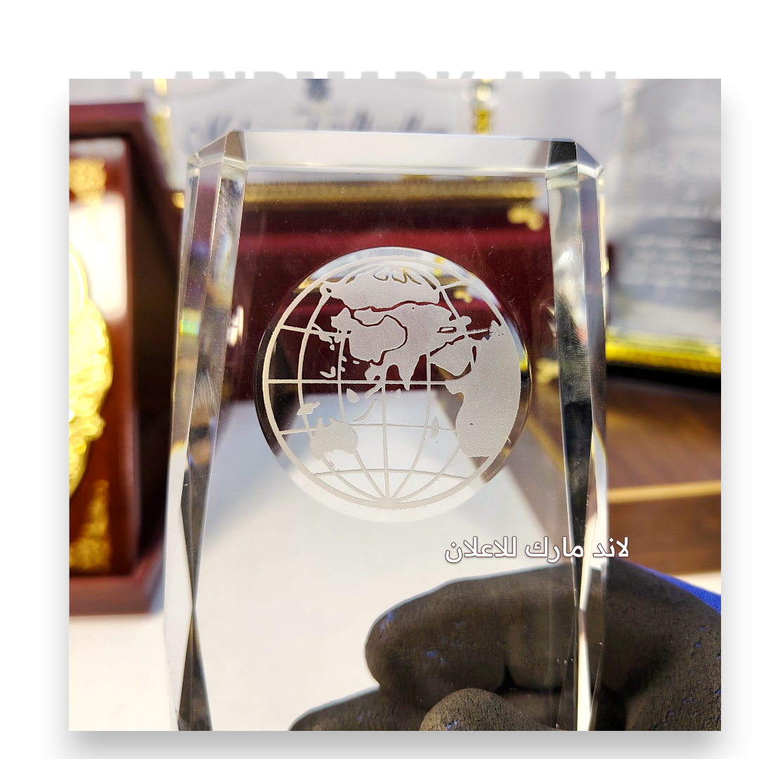 🌍 تصميم: نصف كرة أرضية محفورة بعمق داخل الكريستال