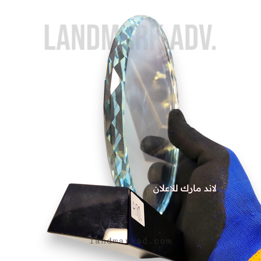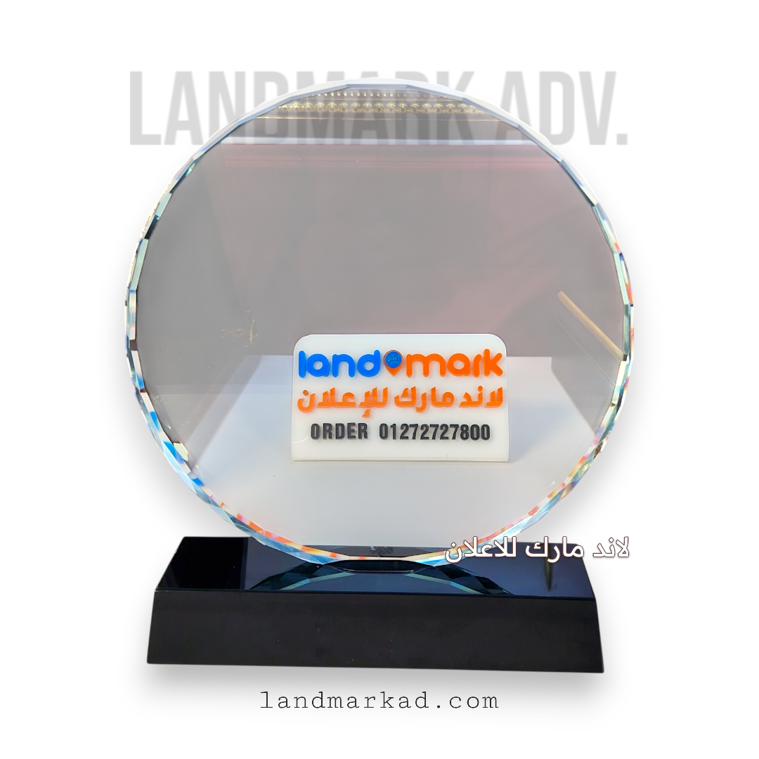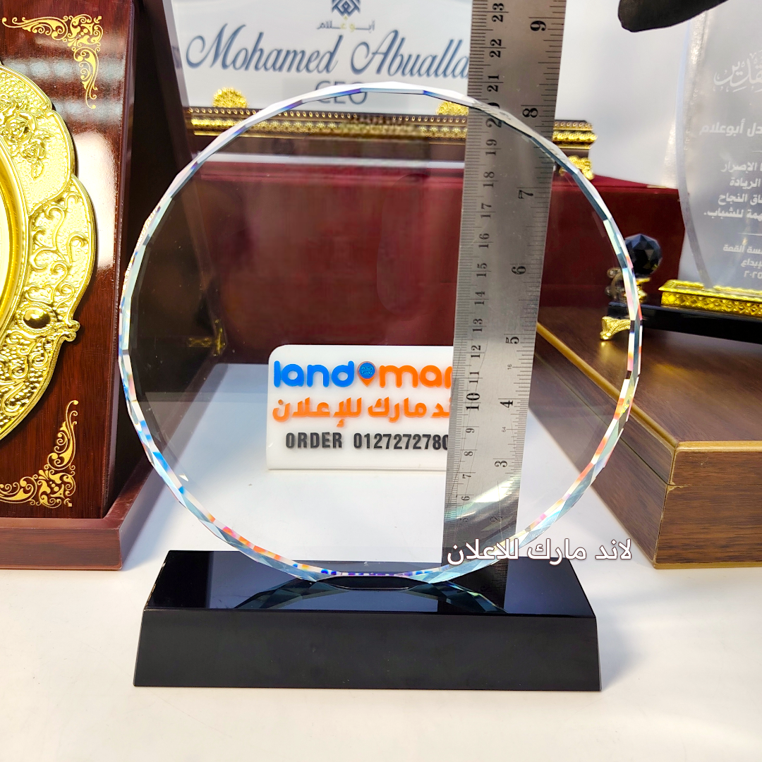 📸 الإهداء بيكون على الدائرة الكريستال نفسها، وده بيدي مظهر راقي وراقي جدًا لأي مناسبة تكريم أو احتفال.
