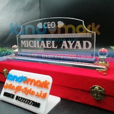 لو بتدور على لمسة فخامة وأناقة، فإن Crystal NamePlate S100 يافطة مكتب كريستال هو الاختيار المثالي لأي مكتب إداري أو استقبال. التصميم الكريستال النقي بيدّي إحساس احترافي وراقي، وبيظهر اسمك أو منصبك بشكل مميز يجذب الانتباه من أول نظرة.