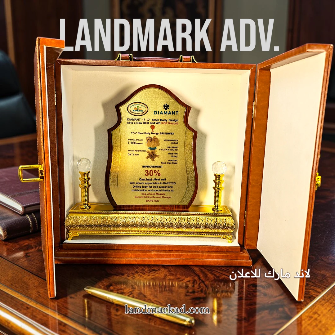 بمقاس 40 سم، الدرع مناسب للعرض في المكاتب، الشركات، أو المنازل، وبيظهر بشكل واضح وجذاب في أي مكان.