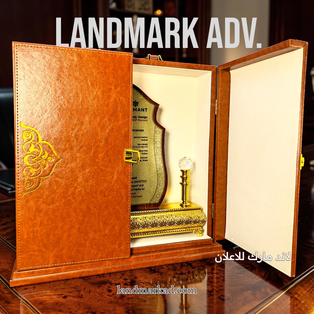 ✨ درع خشب شكل اسلامي فى علبة دولاب جلد مطرزة هو الاختيار المثالي للتكريم الراقي واللمسة الفخمة في أي مناسبة مميزة. تصميمه الأنيق المستوحى من الطابع الإسلامي بيدي إحساس بالفخامة والذوق العالي، وبيخلي الهدية ليها قيمة معنوية كبيرة.