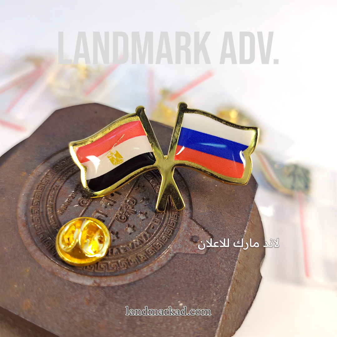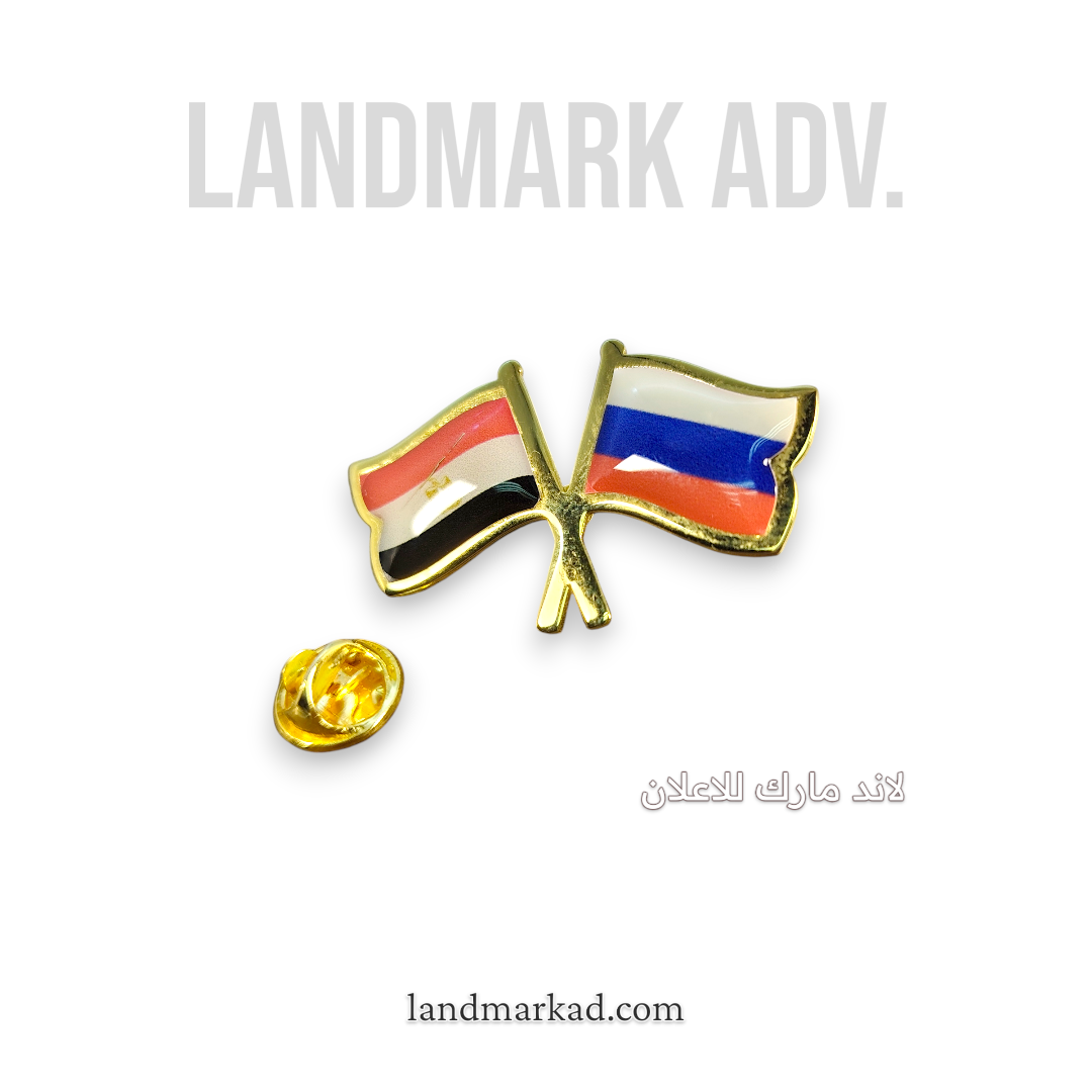 دبوس بدلة علم مصر مع علم روسيا طلاء ماء ذهب