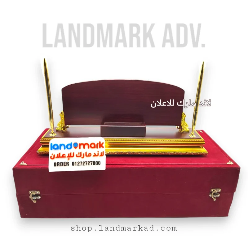 يافطة مكتب خشب مع قاعدة دهبى مزخرفة S92